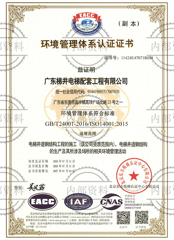 環(huán)境管理體系認(rèn)證證書