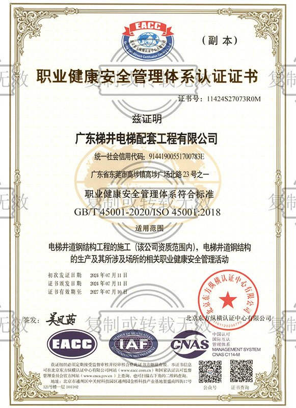 職業(yè)健康安全管理體系認(rèn)證證書